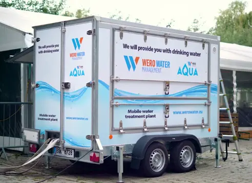 Mobile water treatment plants can remove mechanical and organic impurities, iron, pesticides, bacteria, and adjust taste, colour, odours and pH.